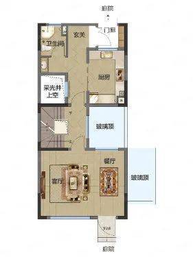 除了楼上,地下二层也很有特色,因为小区在缓坡上,利用缓坡的优势,地形抬高了两层,避免了地下室开挖造成的渗水和潮湿,也保证了采光和空气流通。没有必要担心一楼的采光和通风,因为一楼有三个采光井,一楼有三个采光井.地板高度3米,舒适度相对较高。负二层设计有两个采光井,大厅内承重墙少,也增加了改造的可能性。而且负二层有两个停车位,也很方便停车。